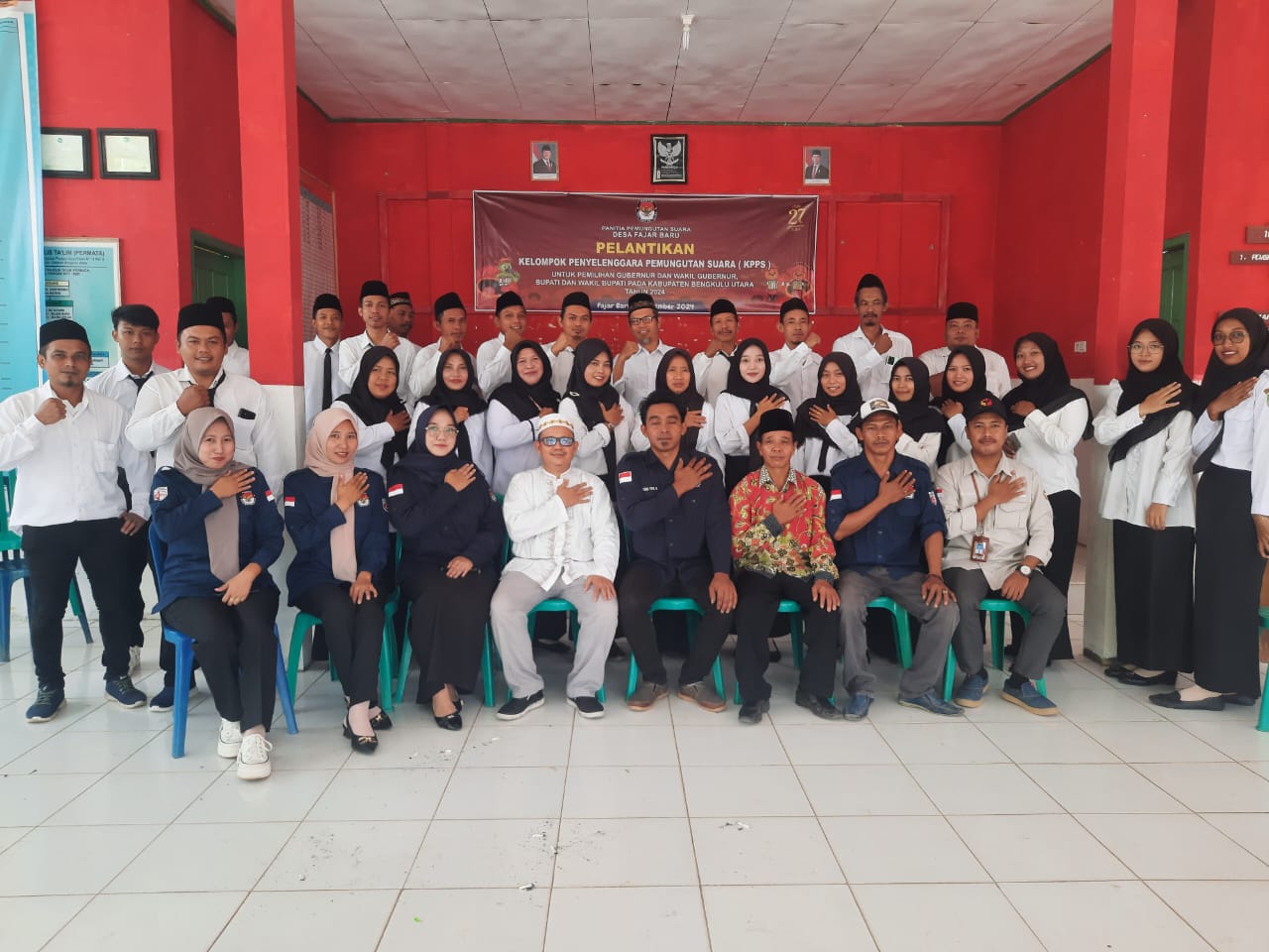 Suarokito.com Bengkulu Utara – Wagiman, Kepala Desa Fajar Baru, Kecamatan Ketahun, Kabupaten Bengkulu Utara, menghadiri kegiatan pelantikan petugas Kelompok Penyelenggara Pemungutan Suara (KPPS) yang dilaksanakan di Aula Pertemuan Kantor Desa Pajar Baru, dari pantauan awak media ini turut hadir juga Anggota PKD, Ketua PPS, yang mana kegiatan ini di lakukan secara serentak SE- kecamatan Ketahun yang di mulai jam 08.00, Kamis (07/11/2024).